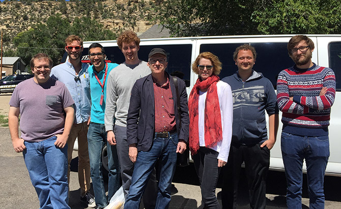 Pictured above, grad students and professors from left to right: Tim Brayton, Leo Rubinkowski, Hamidreza Nassiri, Trace Palmer, JJ Murphy, Kelley Conway, Jacob Mertens, and JJ Bersch.