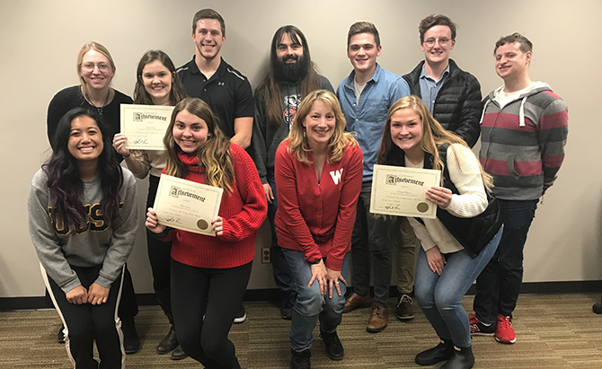 Above, the six finalists are pictured with their instructors. Front row from left to right: Irene Sarmiento, Alexa Rosen, Jennifer Wang, Delaney Bignell. Back row from left to right: Liz Koemets, Angie Ferris, Marty Strey, Luke Holmaas, Nate Kruse, Joseph Bachar, Jacob Hellman.